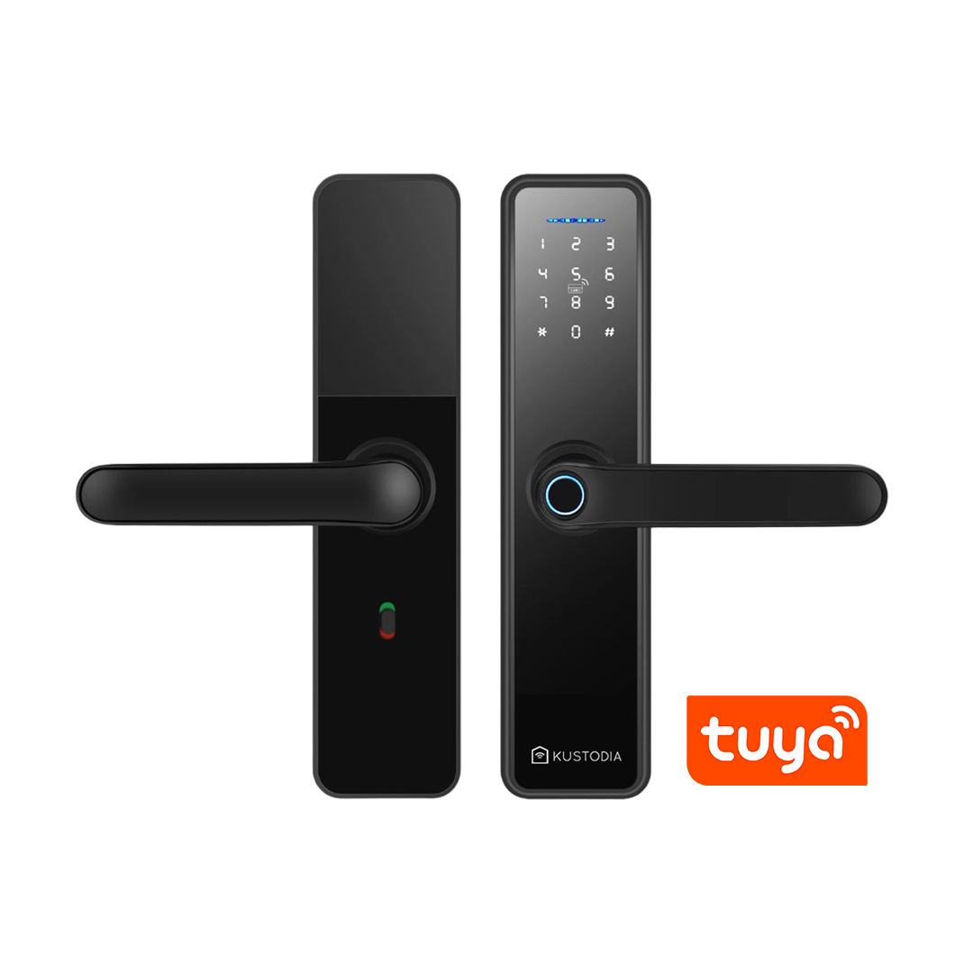 Modos de Apertura: Huella, Código, Tarjeta (13.56 Mhz), Tuya Smart App, Llave mecánica.